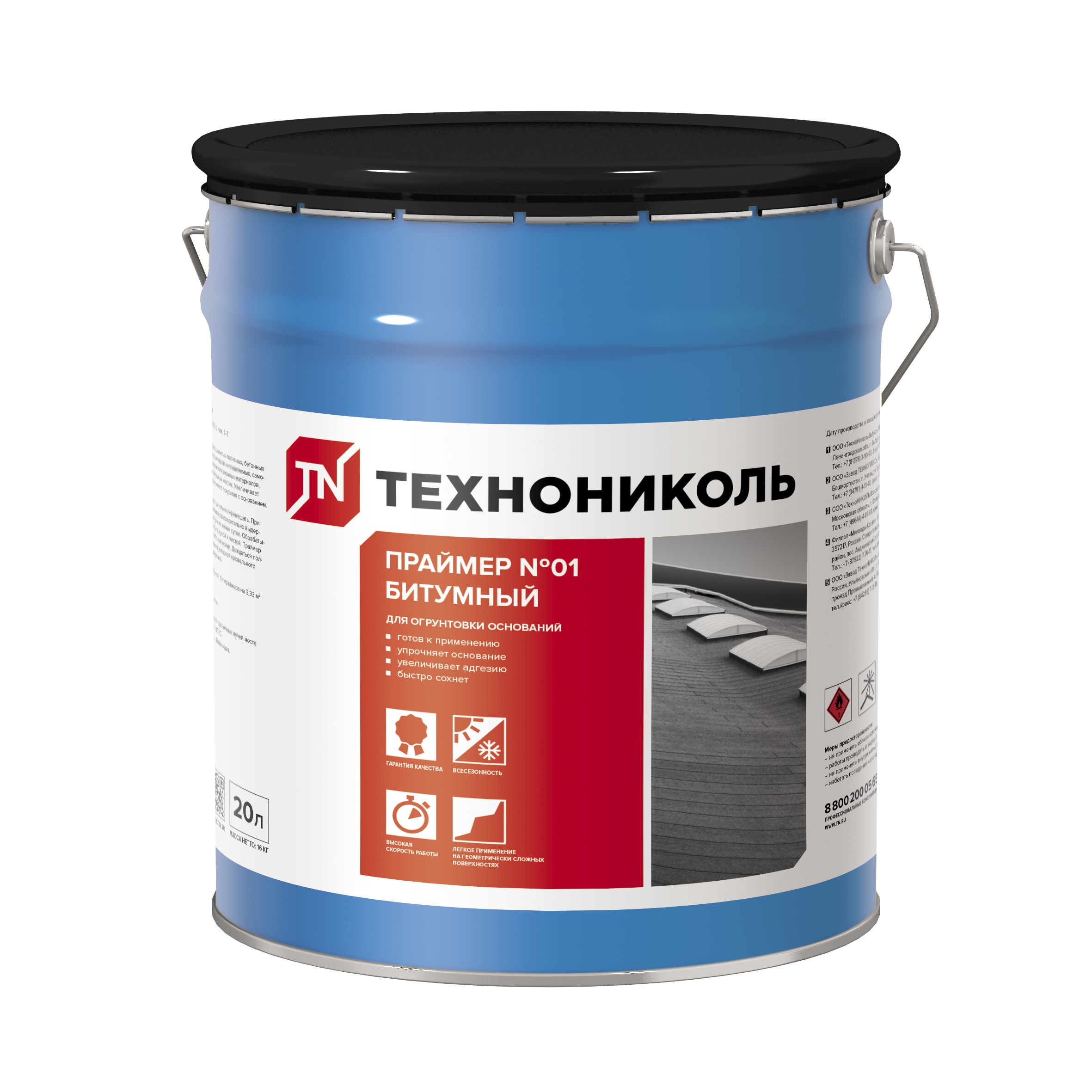 Праймер битумный ТехноНИКОЛЬ №01, ведро 16кг (20л)