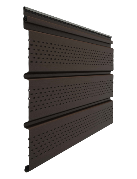 Софит перфорированный – это ПВХ панель для подшивки свесов кровли. Благодаря таким панелям образуется вентиляционное пространство под кровлей, поэтому остальные кровельные материалы не преют и не гниют.