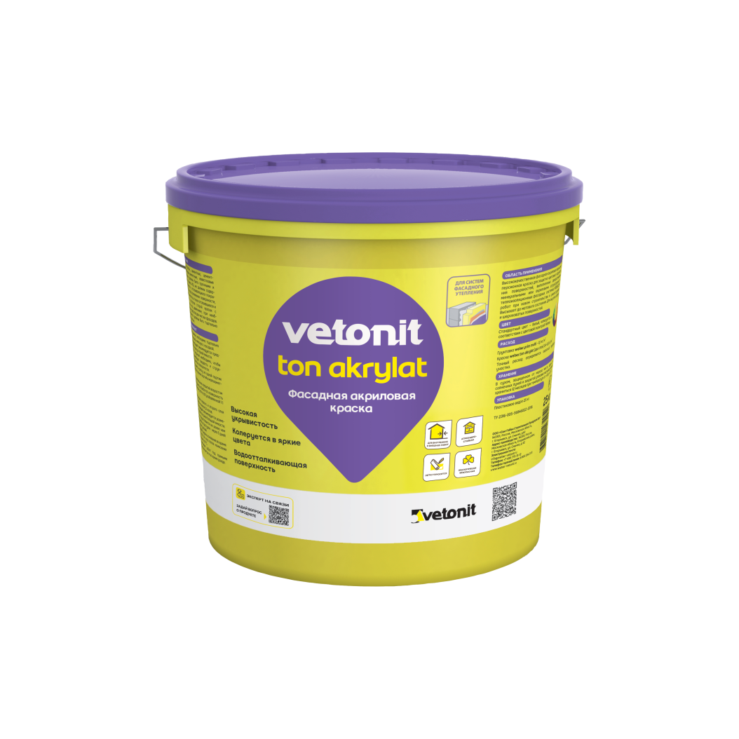 Краска фасадная акриловая Вебер Тон Акрилат (Weber.Ton Akrylat) подходит для наружной окраски поверхностей. Создает надежное и красивое покрытие фасадных систем weber.therm, weber.therm min, weber.therm comfort, weber.therm monoroc c минеральной (каменной и стеклянной) ватой и пенополистиролом. Разработана для минерального основания из цементных штукатурок или шпаклевок.