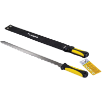 Нож для теплоизоляции ИЗОВЕР разработан специально для нарезки рулонных и плитных утеплителей. Длинна режущего лезвия 42 см, поэтому с ним удобно и быстро получить ровный срез на скрученном рулоне.
