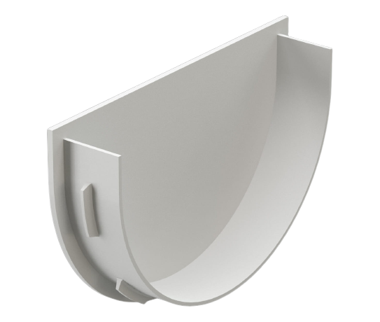- Качественные пластиковые водосточные желоба закруглены с внешней стороны.
