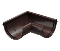 Угловой элемент 90 гр. соединяет желоба при прямых углах поворота карниза. Перенаправляет поток воды. Такой элемент часто используется на вальмовых крышах или на специальных архитектурных выступах.